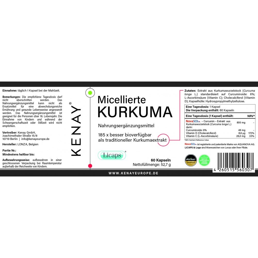 La solubilizzazione micellare di curcuma garantisce un veloce assorbimento e un’alta biodisponibilità. È un processo che accresce la solubilità di sostanze. Le ricerche confermano che NovaSOL® presenta un migliore assorbimento di curcuma rispetto all’estratto di curcuma tradizionale.