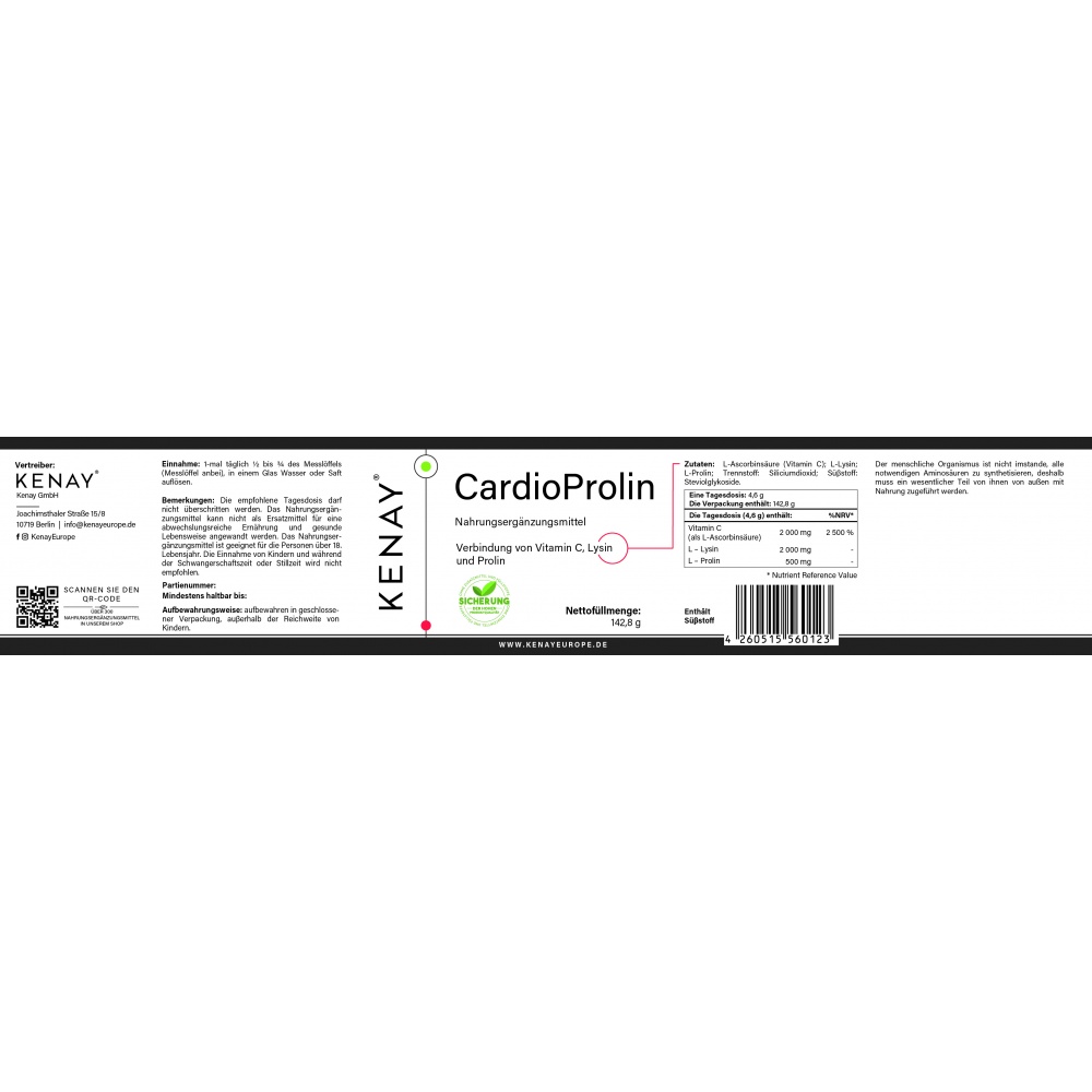 Ingredienti: acido L-ascorbico (vitamina C), L-lisina, L- prolina, dolcificante: glicosidi dello steviolo.